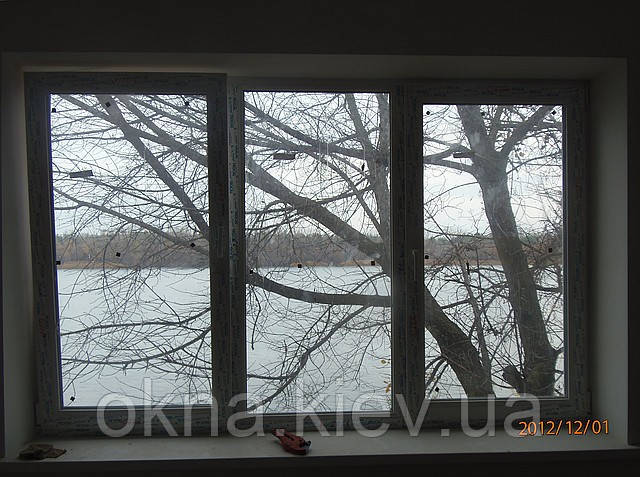 Металопластикове вікно з 5-камерного профілю Trocal: розмір 1750*1360, поділене на 3 стулки, середня стулка поворотно-відкидна, по-боках — глухі.